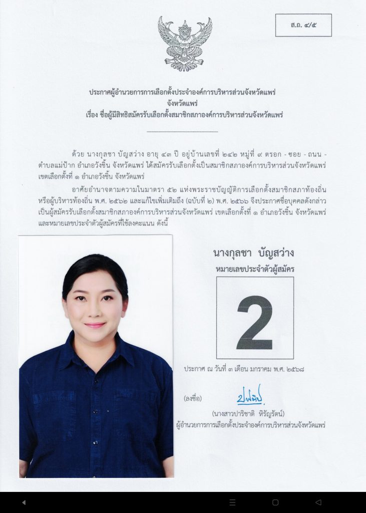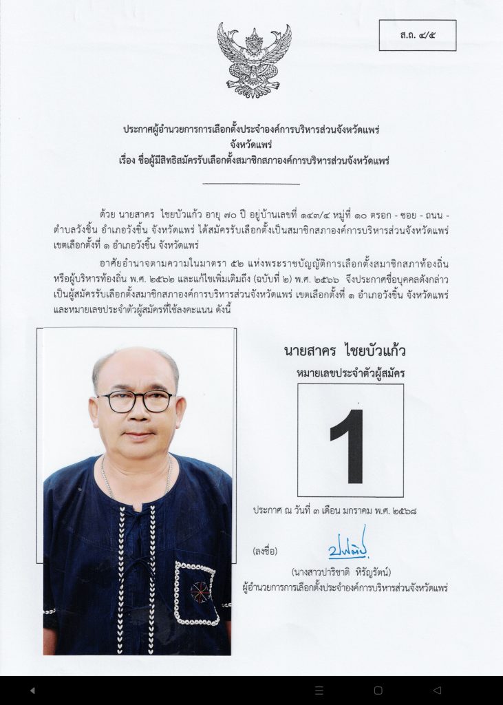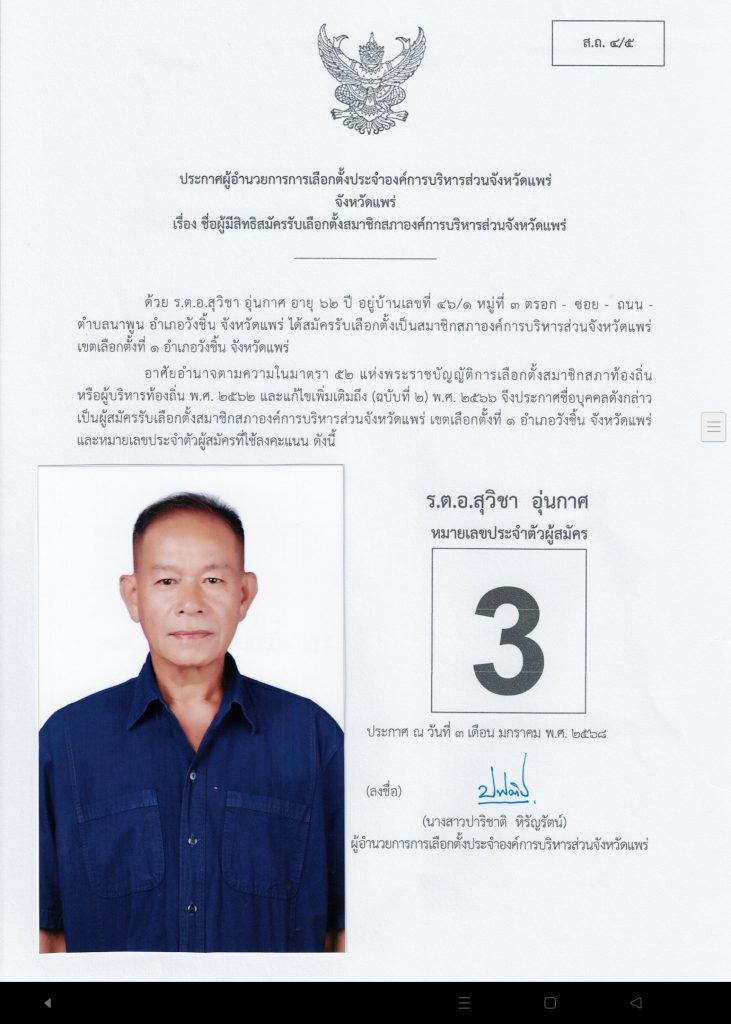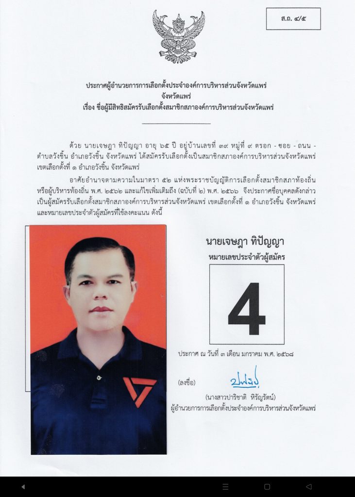 มีผู้เข้ารับสมัครเลือกตั้งในส่วนของอำเภอวังชิ้น 4 ท่านมีรายละเอียดดังนี้