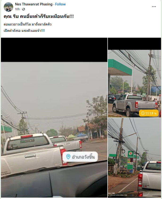 ภาพของแถวรถยาวเกือบร้อยเมตร ความพยายามที่จะกักตุนน้ำมันให้ได้มากที่สุดของบางคนในเช้าวันนี้ สะท้อนให้เห็นถึงพลังของข่าวลือและความกังวลของผู้คนได้อย่างชัดเจน เพียงข่าวเดียวก็สามารถทำให้ถนนสายธรรมดา กลายเป็นฉากของการรอคอยครั้งใหญ่ได้ภายในเวลาไม่นาน.
